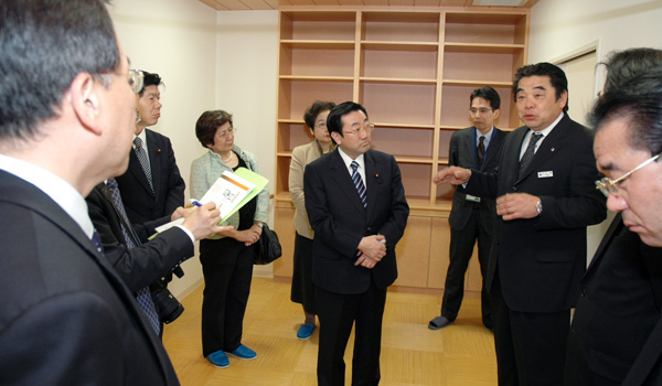 バリアフリー設計、緊急通報システムの設置、家賃補助(一定収入まで)などを特徴とし60歳以上の方を対象とする高齢者向け優良賃貸住宅(高優賃)と、民間事業者が運営するデイサービス、居宅介護支援事業所、有料老人ホームが連携するモデル事業の取り組みを視察しました。